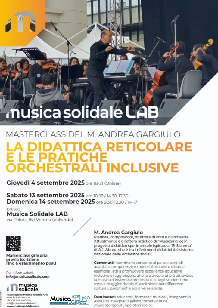 - Giugno 2025, Docente a contratto laboratori di orchestra inclusiva. Scuola Civica di Musica di Rovereto (TN)